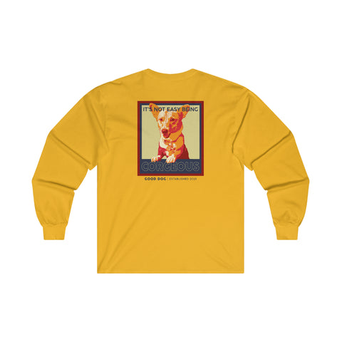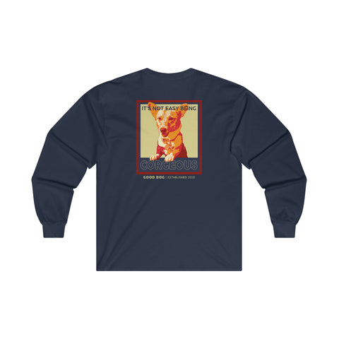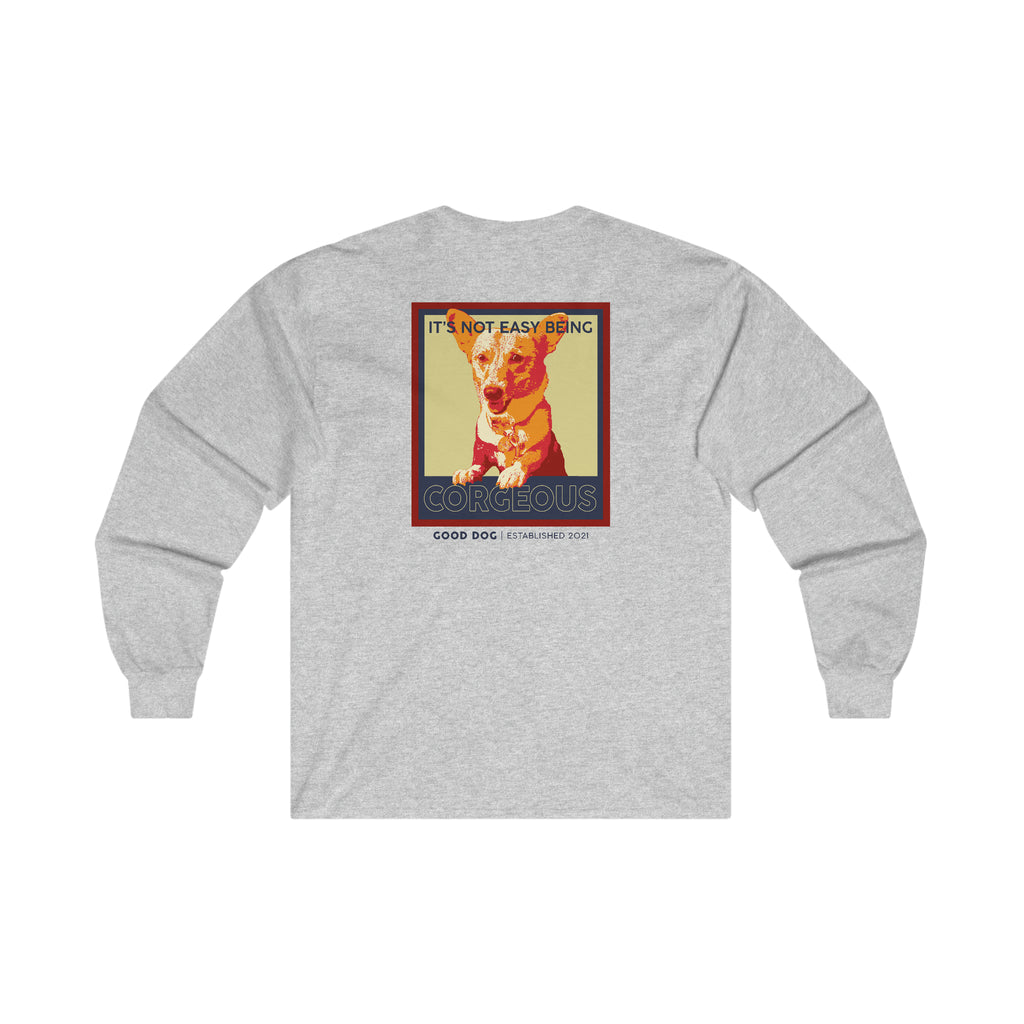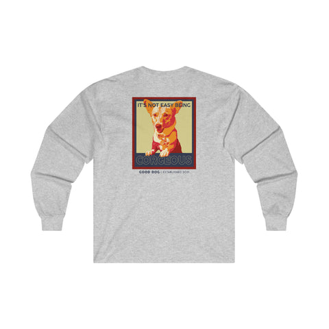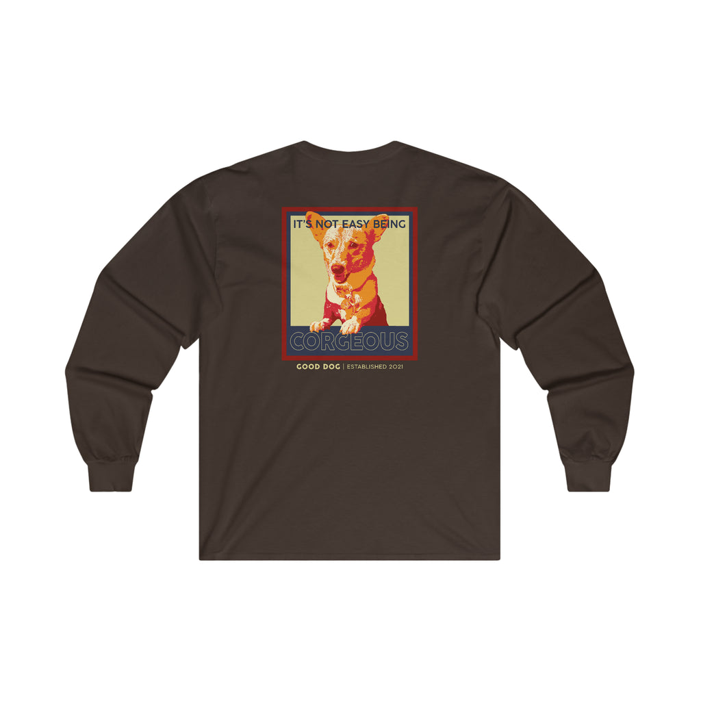 Celebrate your love of all things Corgi with this unique design. A bit more formal than a standard-issue t-shirt, the ultra cotton long sleeve tee is a clear comfort winner. There are no side seams. The shoulders are tapped for improved durability. This makes for a good fitting around the shoulders and neck. The cotton used for these shirts is environmentally friendly.