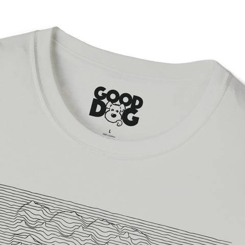 Unknown Dog tee, from the Ruff 'n Roll collection, was inspired by the artwork for the new wave rock band Joy Division's seminal debut album Unknown Pleasure.
